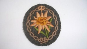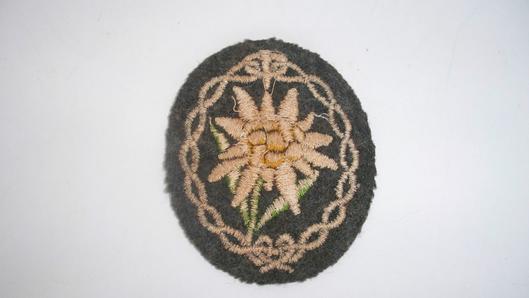 This is a much heavier machine woven edelweiss on the more scarce grey backing unlike the more common examples on green backing encountered, also this badge was also produced in a Bevo weave also a very rare version to find ,A scarce heavy woven pattern, excellent quality badge for qualified members of the mountain troops L71210