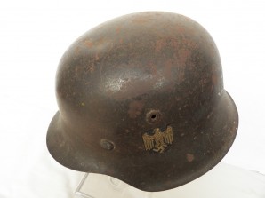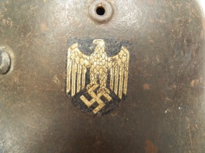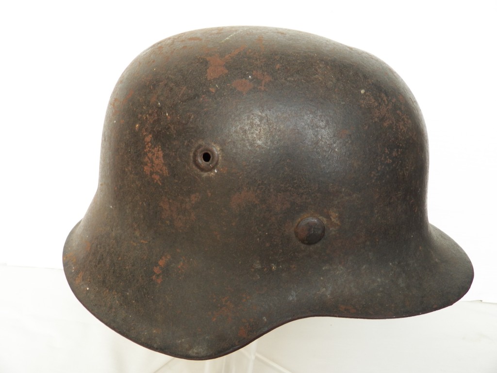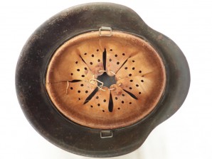 Very nice untouched m42 single decal uncleaned sleeper, undisturbed m31 zink banded liner system in good condition complete with original draw cord approx. head size 57 , Steel Factory stamped ET and sized stamped 64