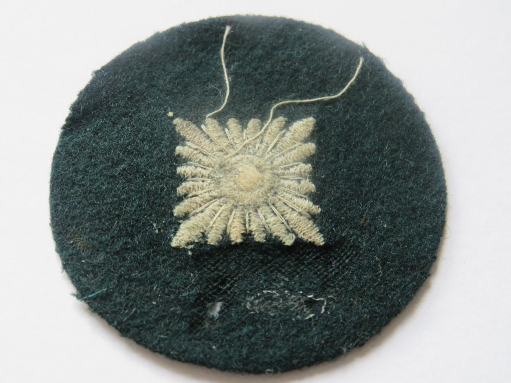 Rank pip on dark green badge cloth ,one moth nip