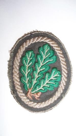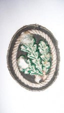 Jager /rifle regiments sleeve insignia ,later war produced specimen machine woven oak-leaf sprigs on cotton backing ,slight fraying to edge and glue residue to reverse from being mounted for display purposes L624
