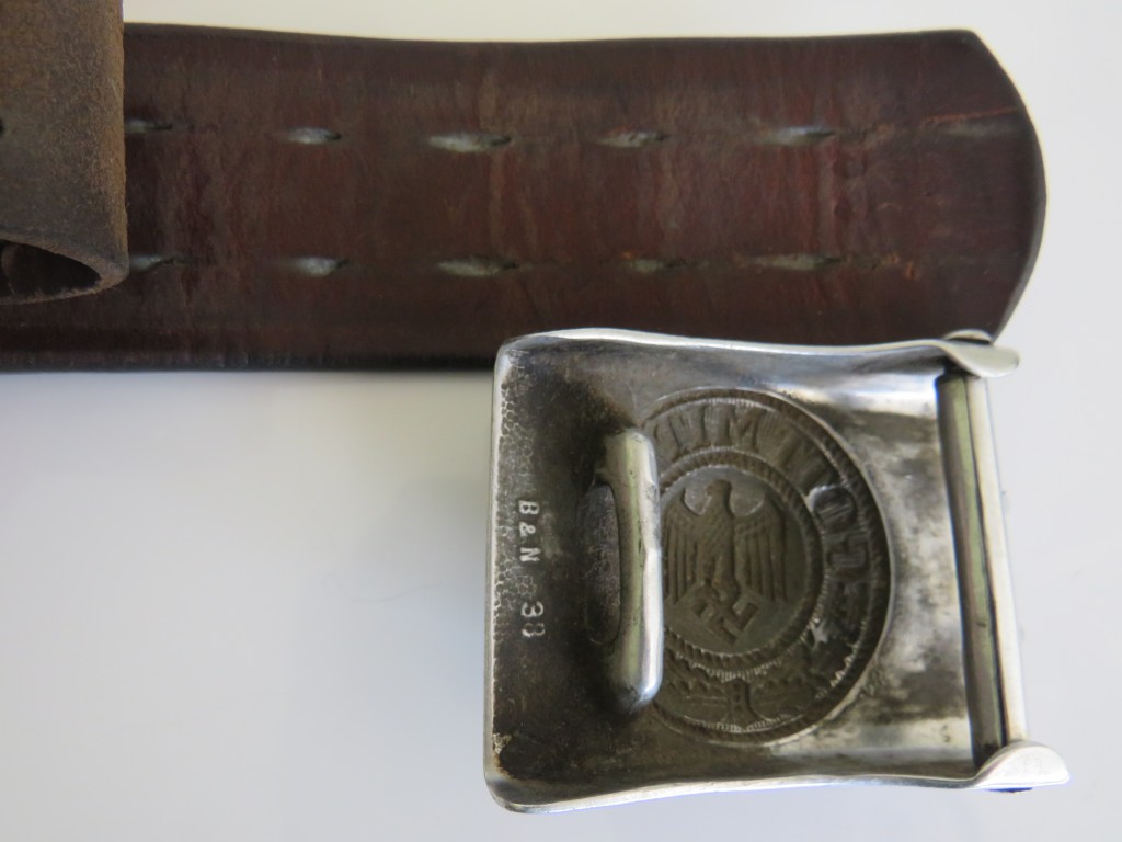 Early rig alloy buckle marked B&N for the maker Berg & Nolt ,brown leather waitsbelt stamped with maker and also dated 1938,leather is size stamped ,total lengh of leather 90 or 36 inches in old money
