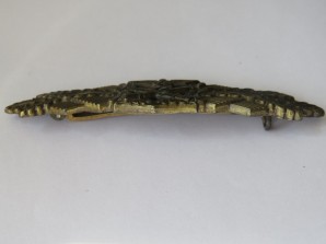 Bronze grade clasp ,slightly convex ,very crisp detail ,hook has been bent over ,so the coke bottle pin will not engage ,dont want to force the hook upwards to allow it to engage ,so a very nice clasp at a very reasenable priceĀ