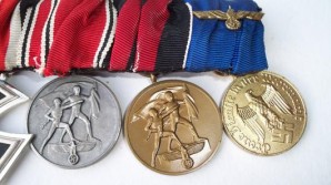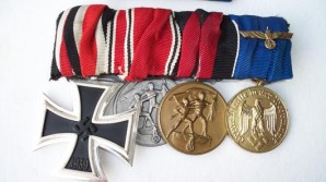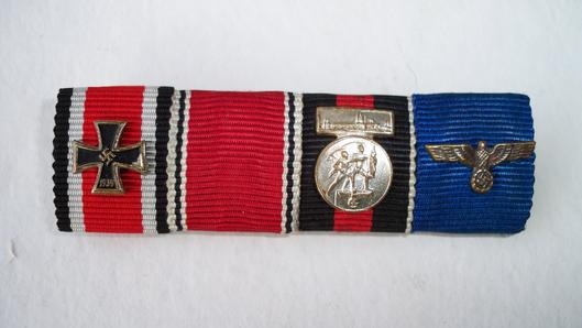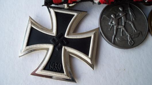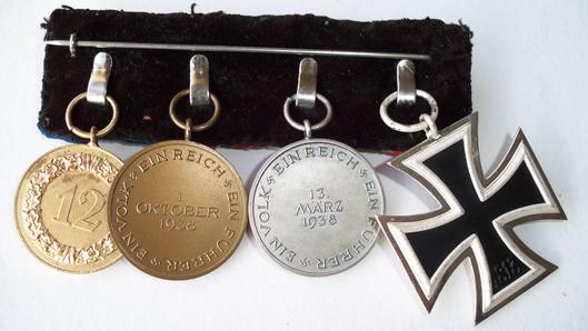 EK 2 in grade one outstanding condition untarnished frame with frosted ribbed inner frame a very beautiful example , Austrian Anschluss Medal in grade one condition ,1st October Medal in grade one condition, 12 year long service Medal in excellent condition, Outstanding group complete with miniature ribbon bar L338