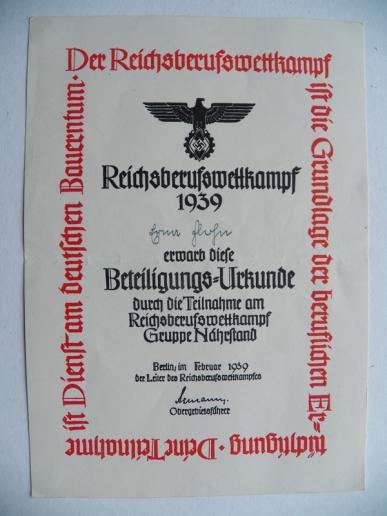 HILTLER YOUTH PARTICIPATION CERTIFICATE
