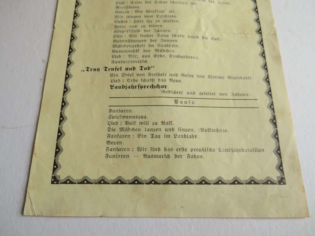 Order HITLER YOUTH DJ / BDM CONCERT DOCUMENT DATED 1934 HITLER YOUTH DJ / BDM CONCERT DOCUMENT DATED 1934 @ £35.00