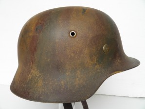 Superb example of a model 40 with three colour camouflage paint finish ,tan green and red ,M31 liner system intact ,complete with its original chinstrap ,not to be missed