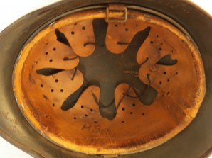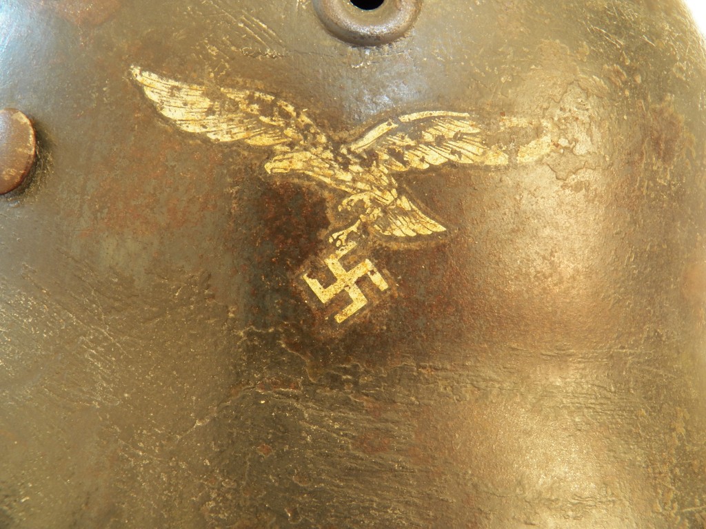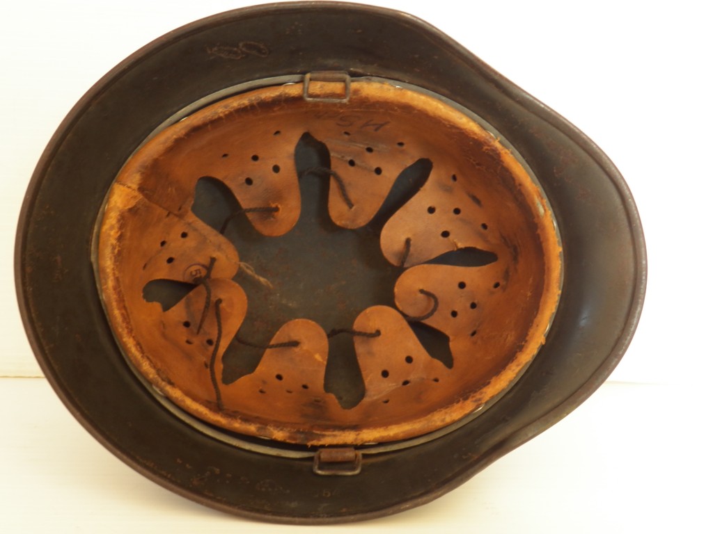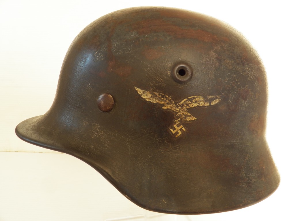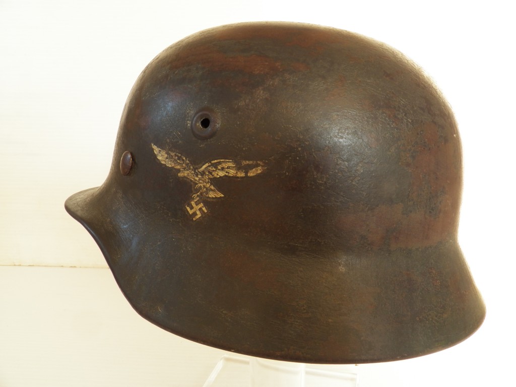 Model 40 with Army dark green cammo over paint typical of the Luftwaffe feld divisions ,shell stamped Q and size stamped 64,complete with its M31 zink banded liner system approx. head size 57