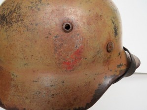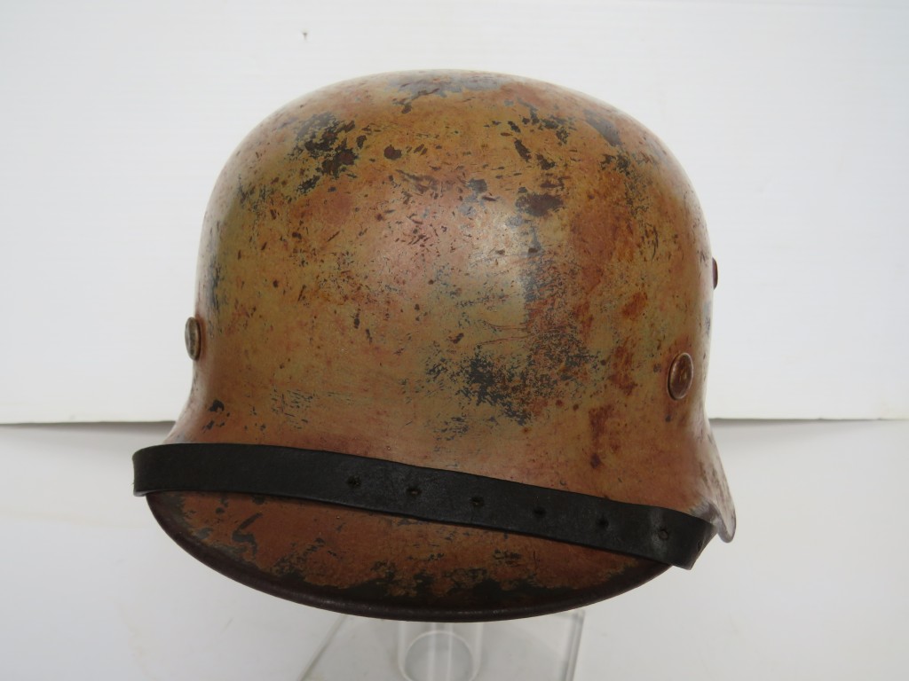 Probably camouflaged for the North Africa ,Italy campaigns,sadly liner pigskin damaged  complete with its original chinstrap maker and dated