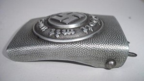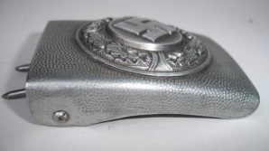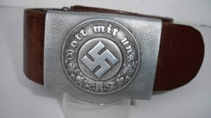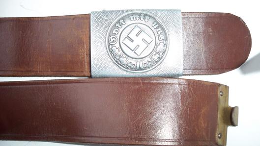 Two piece aluminum Polizei buckle in excellent condition with crisp detail ,very high definition to the swastika and wreath ,complete with brown leather belt in excellent condition still very supple approx size 95 , possibly shortened leather and tongue reattached, still a very desirable piece L28015/32