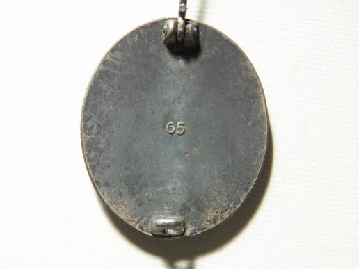 Second pattern die cast silver grade wound badge Hersteller No 65 for the maker Klein & Quenzer ,Idar /Oberstein M69426