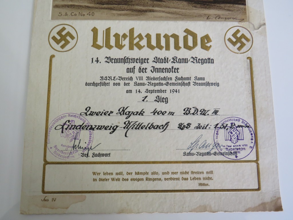 THIRD REICH PERIOD CANOEING AWARD 1941