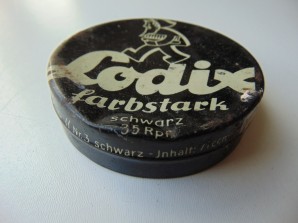 THIRD REICH PERIOD GERMAN BOOT POLISH TIN PRICED IN REICH MARKS