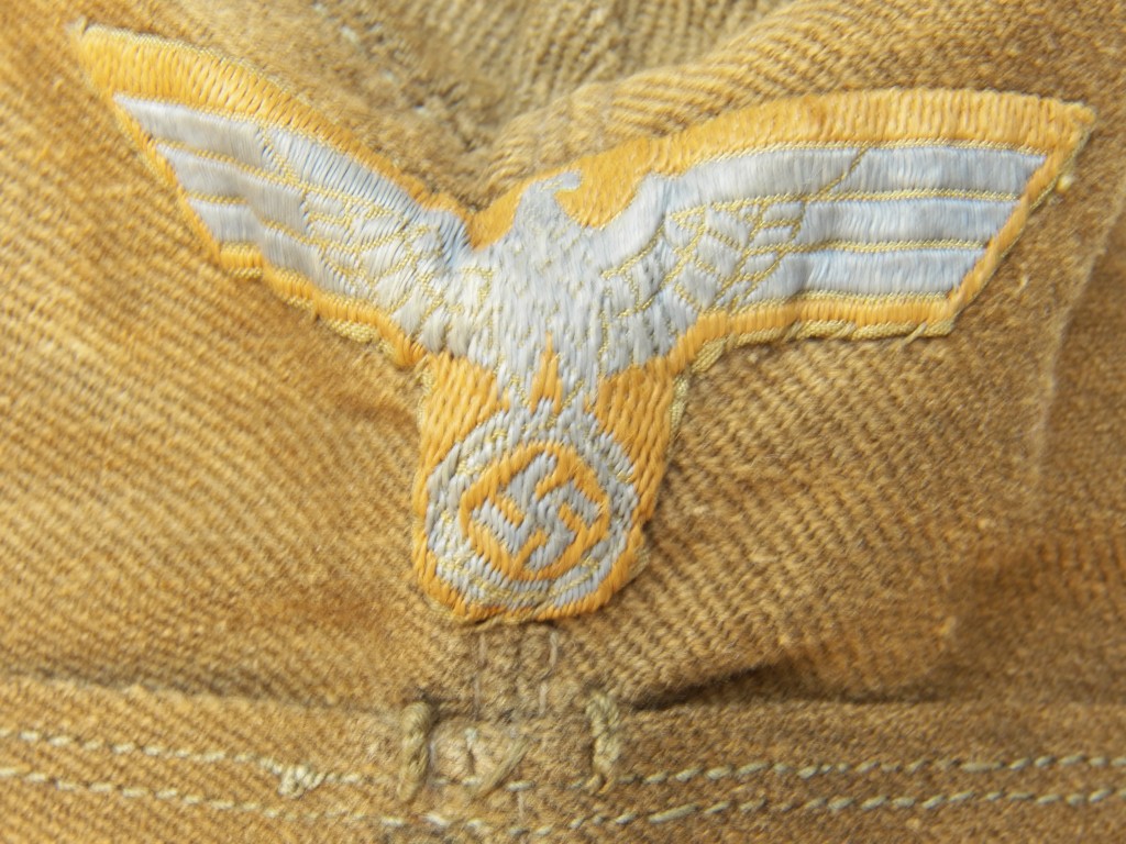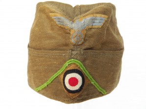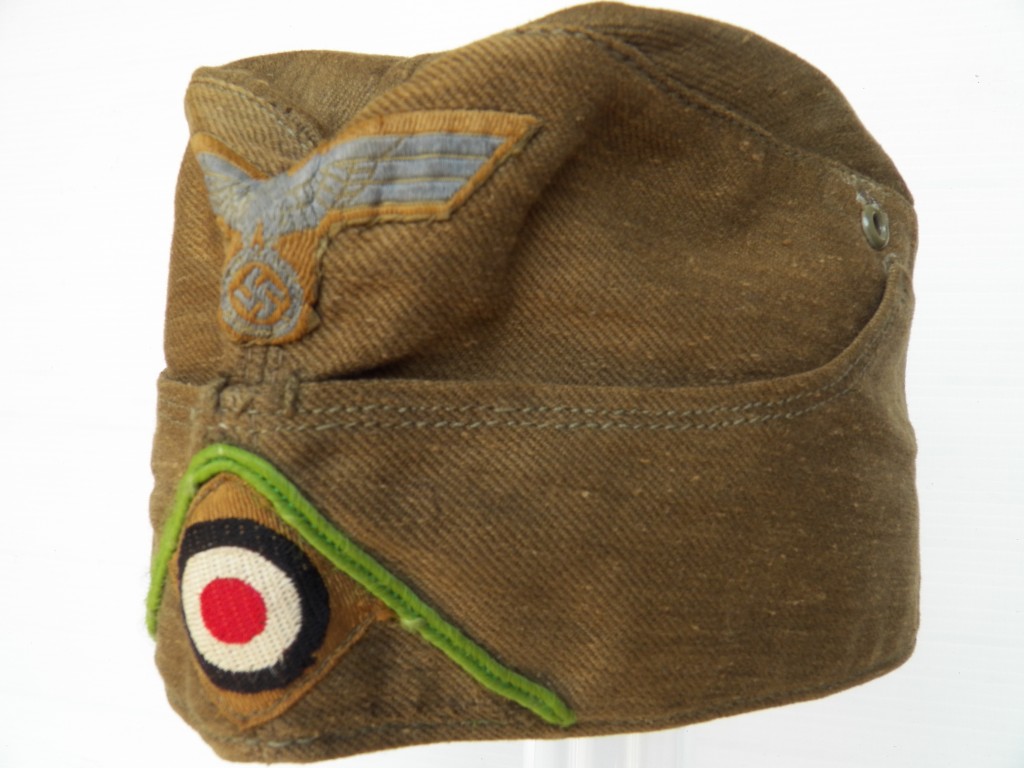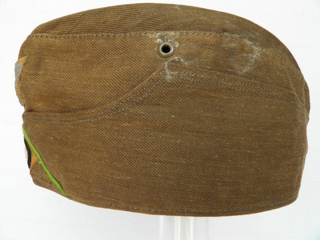 Tropical side cap by Clements Wagner original machined light green soutage for Panzer Grenadiere units ,small amount of staining from the metal grommets