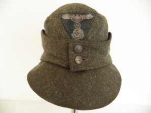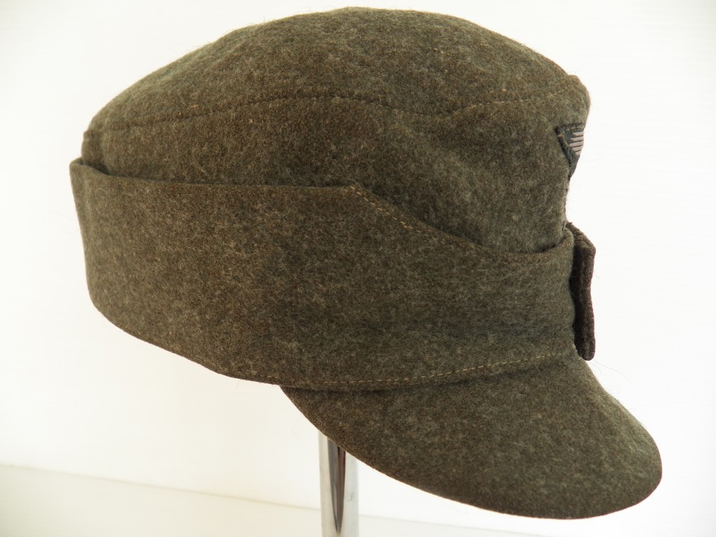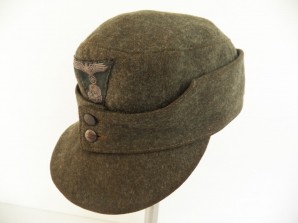 Very nice late SS M43 cap gently worn with no damage or mothing ,original machined on SS trapzoid ,artificial silk herringbone lined ,hard to find cap approx size 55 /56