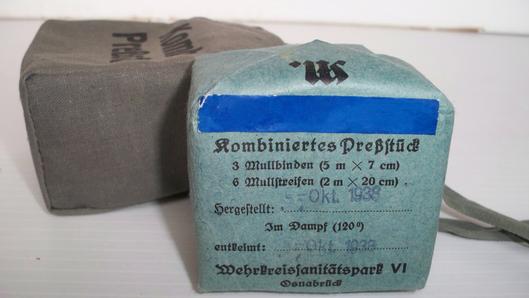 Various sized bandages in paper wrapper dated 1939 ,complete with its cloth pouch,excellent grade one condition L947