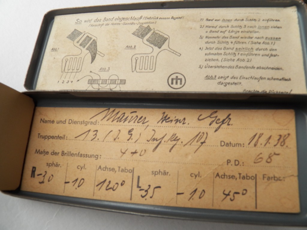 Spectacles issued infantryman Regiment 107 and dated 1938