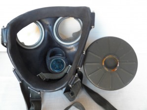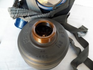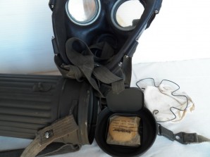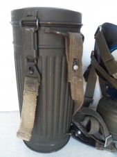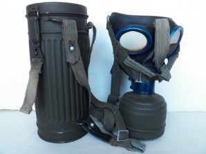 M38 gas mask Second model dated 44 ,complete with its carrying canister dated 44 with near all its original paint finish remaining very nice set in near grade one condition