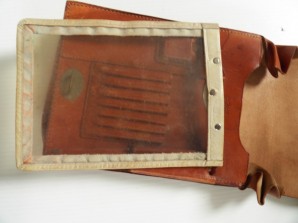 Nice brown mapcase FL stamped for Luftwaffe issue maker marked Berlin 1934 with matching maker and date celluloid map holder insert
