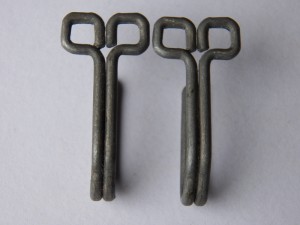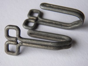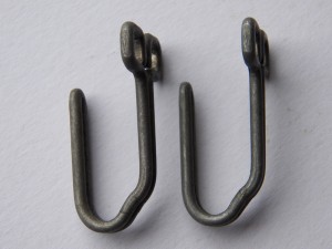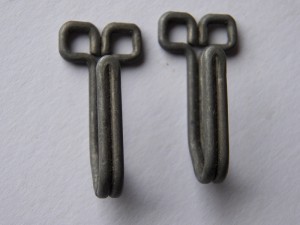 Two light metal support hooks